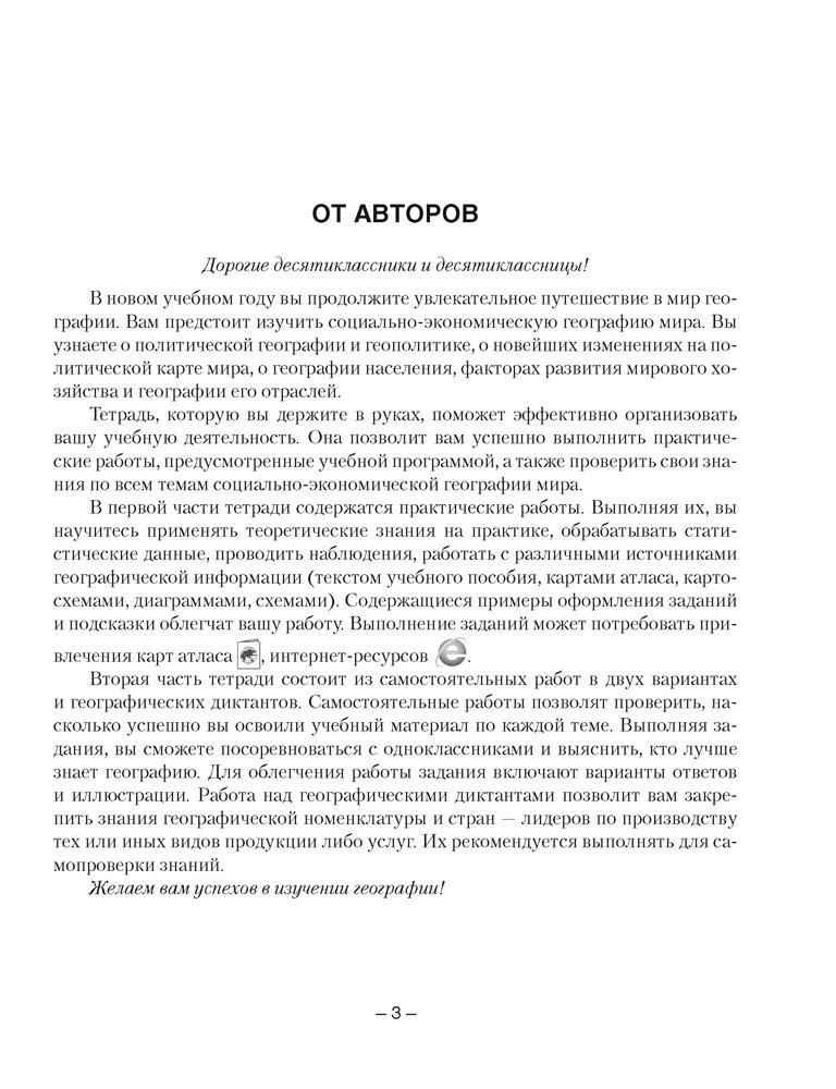 География. Социально-экономическая география мира. 10 класс. Тетрадь для практических и самостоятельных работ. ГРИФ