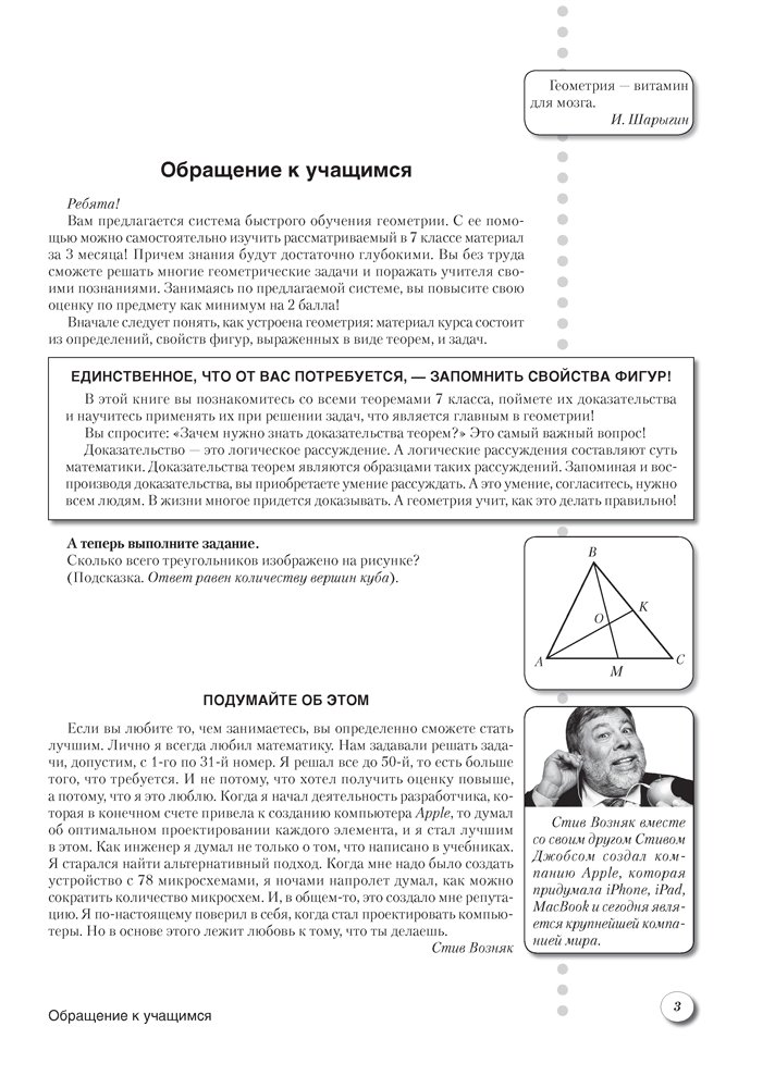 Книга является активным приложением к учебному пособию для 7 класса. Она позволяет быстро обобщить, систематизировать учебный материал и при желании изучить его с опережением программы. Каждая тема содержит опорный конспект, набор задач на готовых чертежах в двух вариантах, вопросы и ответы на них, а также ключевые задачи с решениями. В конце издания приводятся ответы.