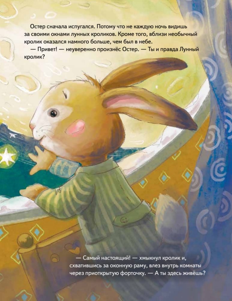 В самую волшебную ночь в году, перед Новым годом, может случиться что угодно! Крольчонок Остер долго не может заснуть и глядит в окно. Интересно, а бывает ли на самом деле то, о чём пишут в сказках? Живёт ли на Луне Лунный кролик? Ой, а вот и он сам! Настоящий и очень задорный! С ним так весело играть и даже… летать вокруг ёлочки. Но у Лунного кролика есть свой маленький секрет. Хотите узнать какой? Тогда скорее открывайте эту книгу, наполненную уютным лунным светом, новогодним волшебством и добротой! В конце книги под QR-кодом вы сможете послушать весёлую песенку Лунного кролика.