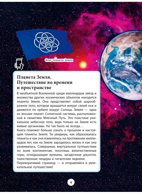 Красочно иллюстрированное издание поможет больше узнать о прошлом и настоящем планеты. Читатель узнает, как образовалась Земля и как она изменялась на протяжении миллиардов лет, как здесь зародилась и развивалась жизнь. Технология дополненной реальности позволяет совершить виртуальное путешествие по всем континентам, посетить величественные горы, увидеть огнедышащие вулканы, загадочные джунгли, таинственные пещеры и гигантские ледники.
