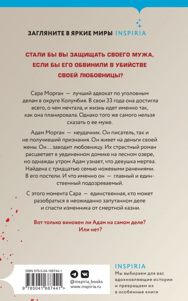 С этого момента Сара – единственная, кто может спасти Адама от смертной казни. Ей приходится взяться за свое самое сложное дело в своей практике: защищать в суде собственного мужа – человека, обвиняемого в убийстве своей любовницы.