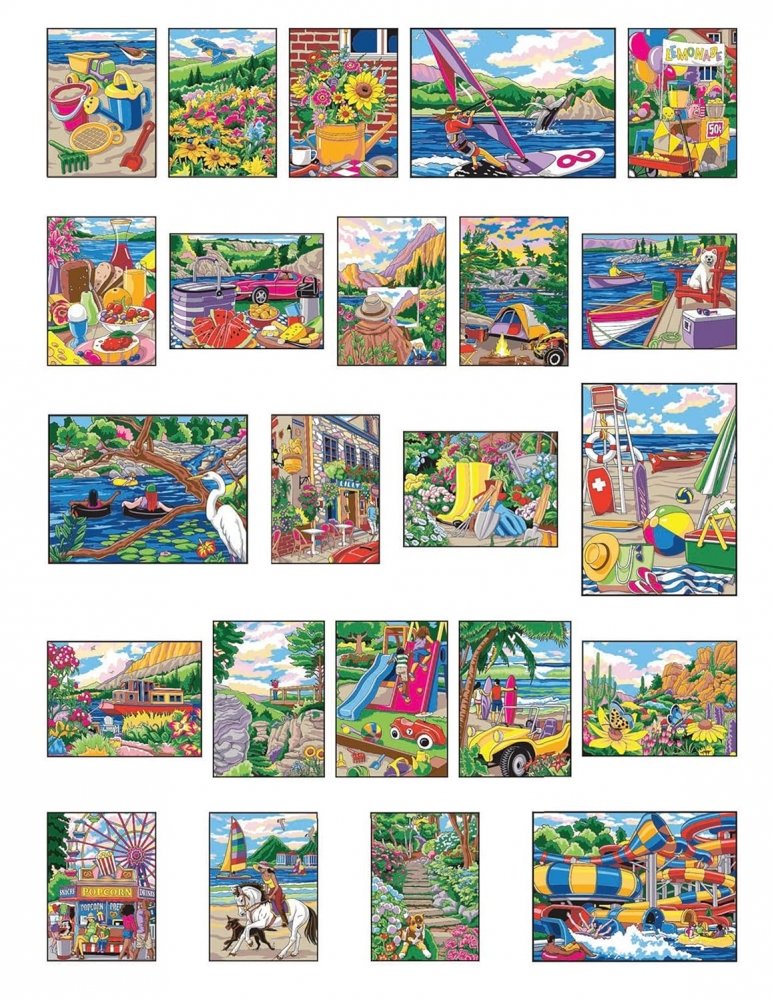 Capture the magic and wonder of long, sun-filled summer days with this beautiful color-by-number coloring book. Forty-six detailed scenes of idyllic summertime settings include picnicking, boating, biking, hiking, windsurfing, gardening, and relaxing amid backdrops of mountains, lakes, beaches, parks, palm trees, backyard barbeques, outdoor cafés, and more. Colorists can use the brilliant hues in the simple color key or create their own palette. Pages are printed on one side only and perforated for easy removal.