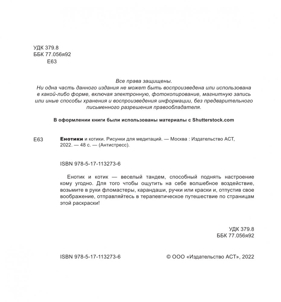 Енотик и котик — веселый тандем, способный поднять настроение кому угодно. Для того чтобы ощутить на себе волшебное воздействие, возьмите в руки фломастеры, карандаши, ручки или краски и, отпустив свое воображение, отправляйтесь в терапевтическое путешествие по страницам этой раскраски!