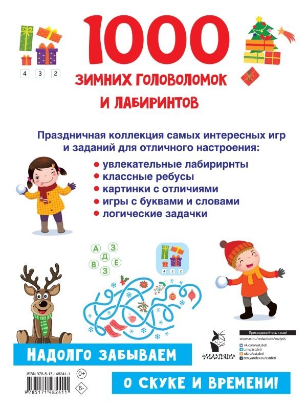 Подарочная книжка "1000 зимних головоломок и лабиринтов" — это путешествие в мир новогодних чудес. Креативные задания развивают интеллект, мышление, зрительное восприятие, творческое воображение, координацию движений руки, поднимают настроение и создают праздничную атмосферу.
