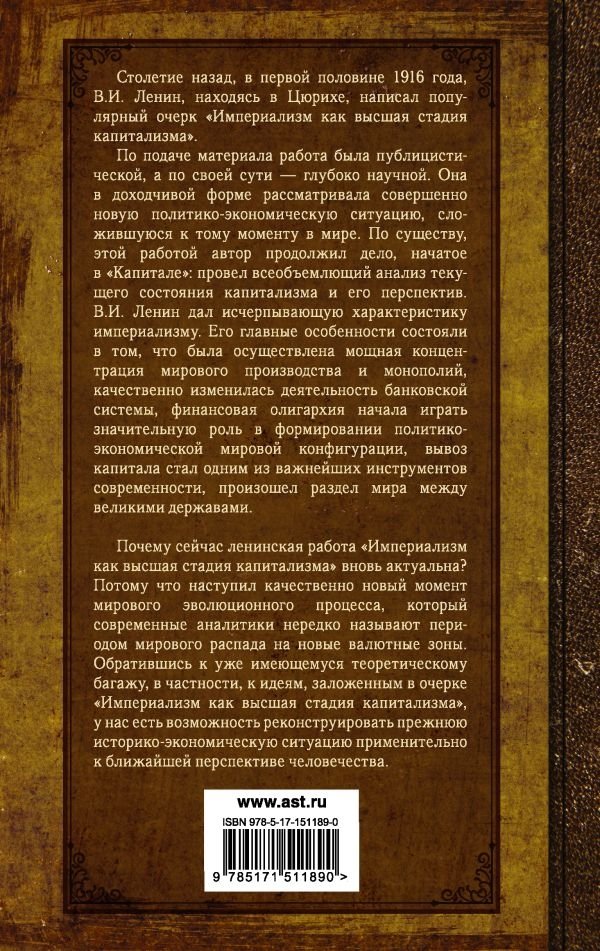 Экономическая работа "Империализм как высшая стадия капитализма" посвящена переходу капитализма в конце XIX — начале XX в. от стадии первоначального накопления капитала к стадии монополистического капитализма, или империализма. В очерке доступно излагаются основные экономические закономерности, присущие капитализму на данном этапе развития.
