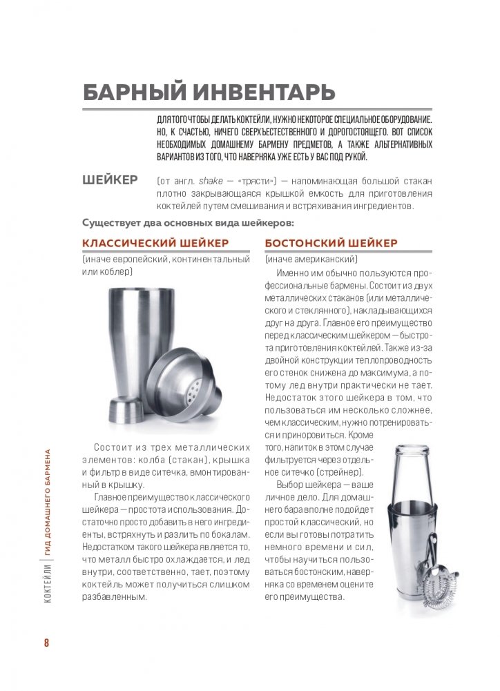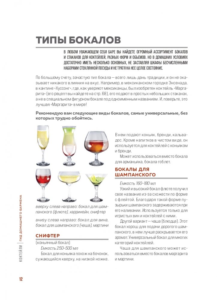Помимо рецептов, в книге собрана интересная и занимательная информация о коктейлях, приводится описание барного инвентаря, основных типов бокалов и напитков, а также список оптимальной комплектации домашнего бара без излишеств, то есть, разумной и не слишком обременительной для вашего бюджета.