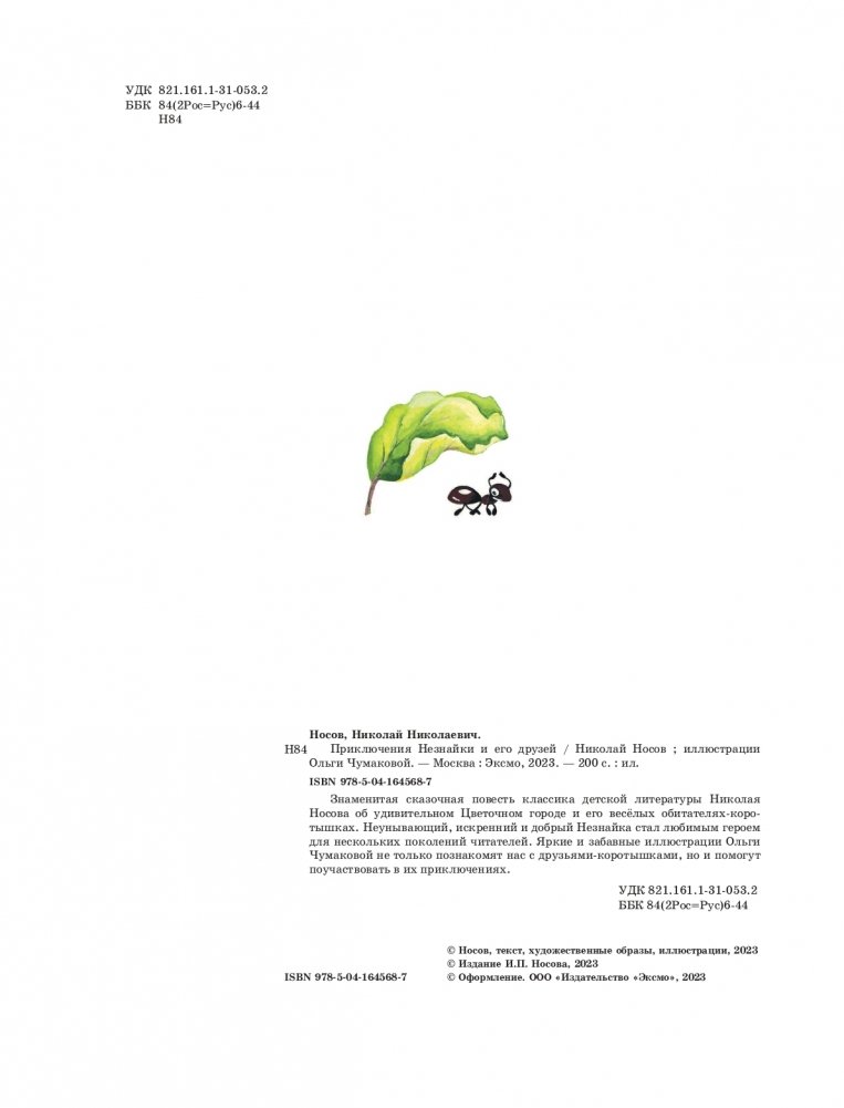 Знаменитая сказочная повесть классика детской литературы Николая Носова об удивительном Цветочном городе и его весёлых обитателях-коротышках. Неунывающий, искренний и добрый Незнайка стал любимым героем для нескольких поколений читателей. Яркие и забавные иллюстрации Ольги Чумаковой не только познакомят нас с друзьями-коротышками, но и помогут поучаствовать в их приключениях.