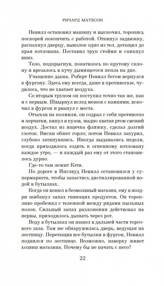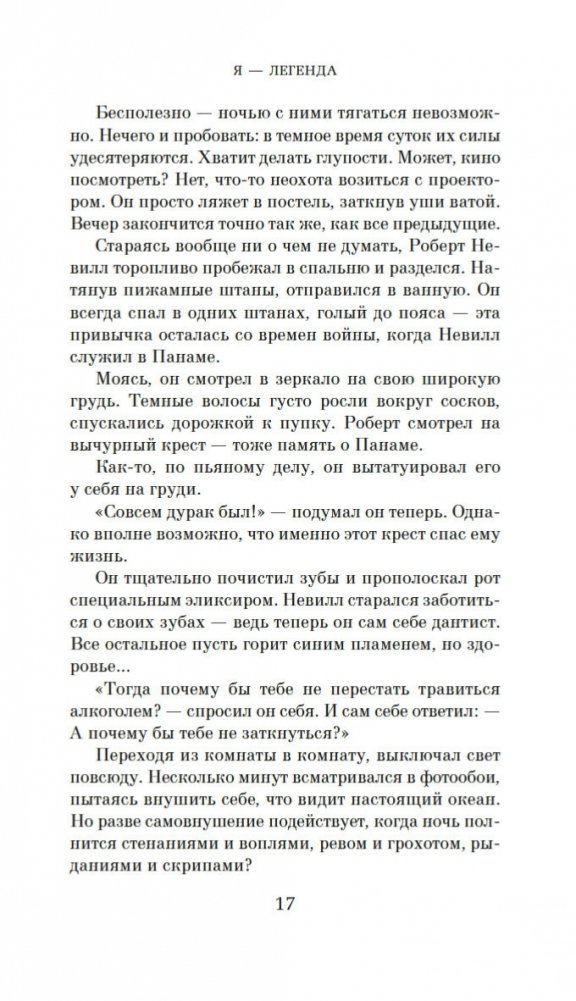 «Я — легенда» Ричарда Матесона — книга поистине легендарная, как легендарно имя ее создателя. Роман породил целое направление в литературе, из него выросли такие мощные фигуры современного литературного мира, как Рэй Брэдбери, Стивен Кинг… — двух этих имен достаточно для оценки силы влияния. Лучшие режиссеры планеты — Стивен Спилберг, Роджер Корман и другие — поставили фильмы по произведениям Матесона. Второй роман, вошедший в эту книгу, «Невероятный уменьшающийся человек», не менее знаменит, чем первый. Человек — песчинка перед темной мощью природы, но и эта малая молекула жизни всеми силами должна защищать себя, чтобы доказать и себе, и миру свое право на земное существование.