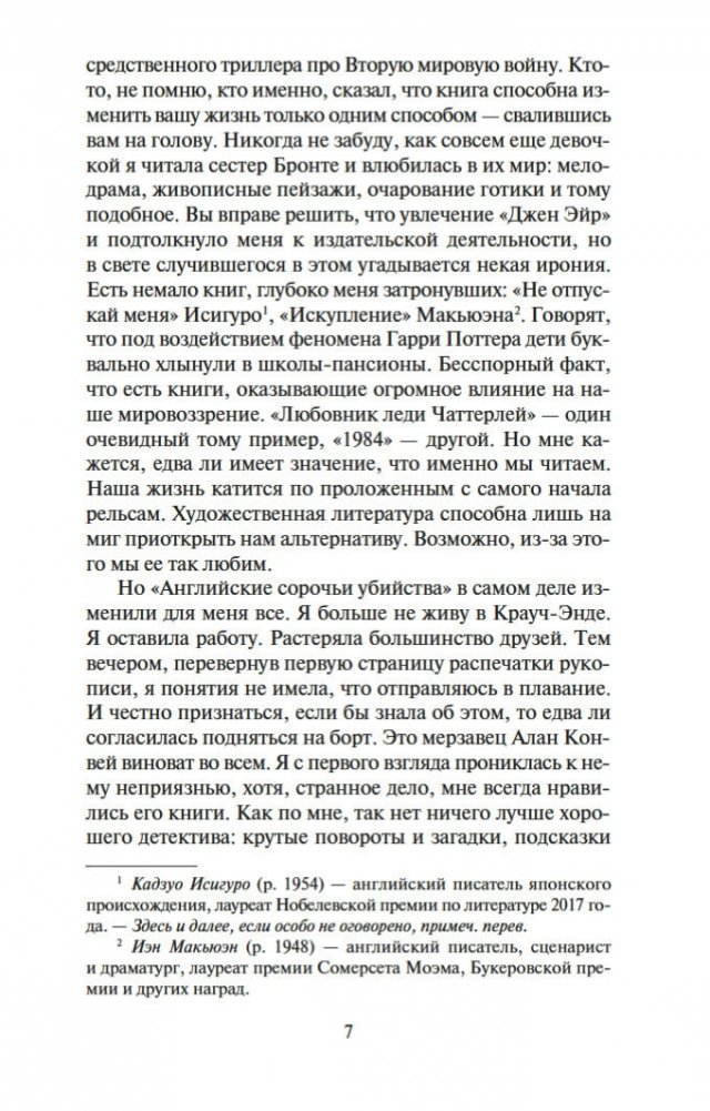 Редактор Сьюзен Райленд читает рукопись детективного романа, который с нетерпением ожидают поклонники популярной серии, и обнаруживает, что там недостает самого интересного — развязки. Сьюзен начинает поиски пропавших страниц и попутно фантазирует, пытаясь отгадать, кто же является убийцей в романе, составляет список подозреваемых… Известие о смерти Алана Конвея, автора того самого детектива, застает ее врасплох. Он покончил с собой? Стал жертвой несчастного случая? Но Сьюзен не зря двадцать лет редактировала книги криминального жанра, дедуктивный метод знаком ей не понаслышке. Сопоставив некоторые факты, она приходит к выводу, что произошло замаскированное убийство, и с риском для жизни начинает распутывать этот детективный клубок... Роман в романе, литературная игра, полная загадок и мистификаций.