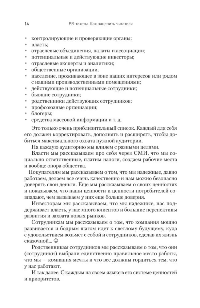 PR-коммуникации - ключевой способ создания имиджа компании и управления им. Если вы понимаете, чем пресс-релиз отличается от милицейского протокола и почему стоит отказаться от желтых тизерных заголовков, если вы хотите, чтобы PR-тексты всегда давали именно тот эффект, который вам нужен, эта книга для вас. Она поможет взглянуть на привычные PR-инструменты под новым углом зрения, сделать ваши тексты более качественными и максимально отвечающими поставленным целям. Руководители пресс-служб и PR-отделов получат уникальный инструмент для обучения и контроля персонала.