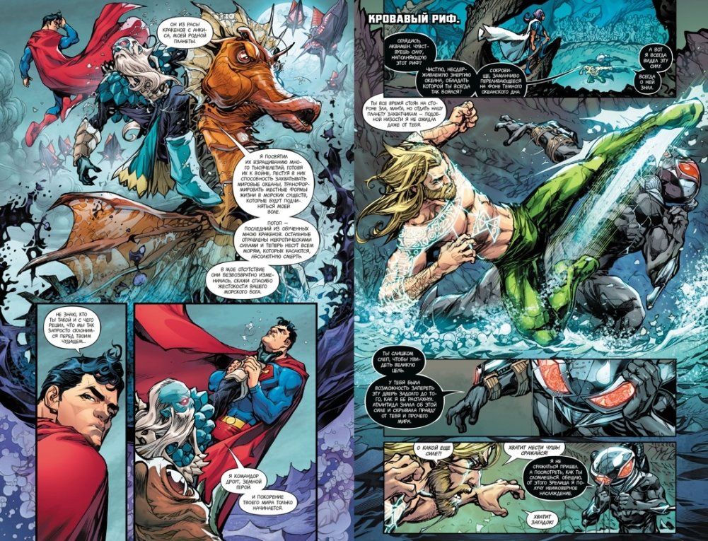 Но над планетой тем временем нависла угроза пострашнее. Воскресли древние морские боги, именуемые Владыками Океанов. Они озлоблены на атлантов и амазонок и грозятся затопить Землю. Артур, Диана и остальные члены Лиги должны остановить и Легион, и Владык Океанов – иначе всплывшие на поверхность секреты утащат планету в пучину отчаяния.
