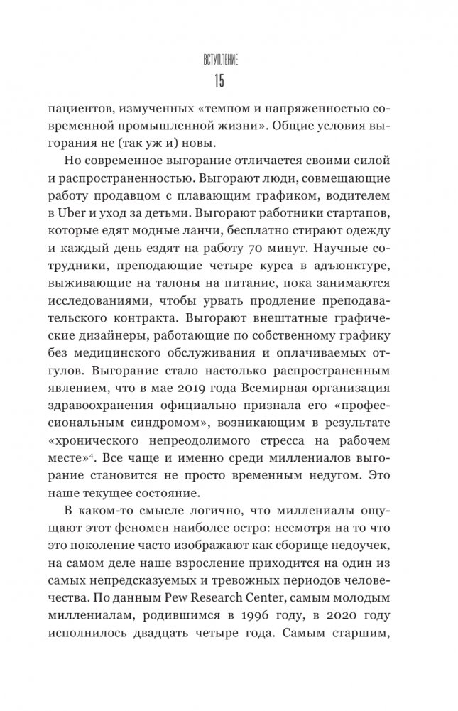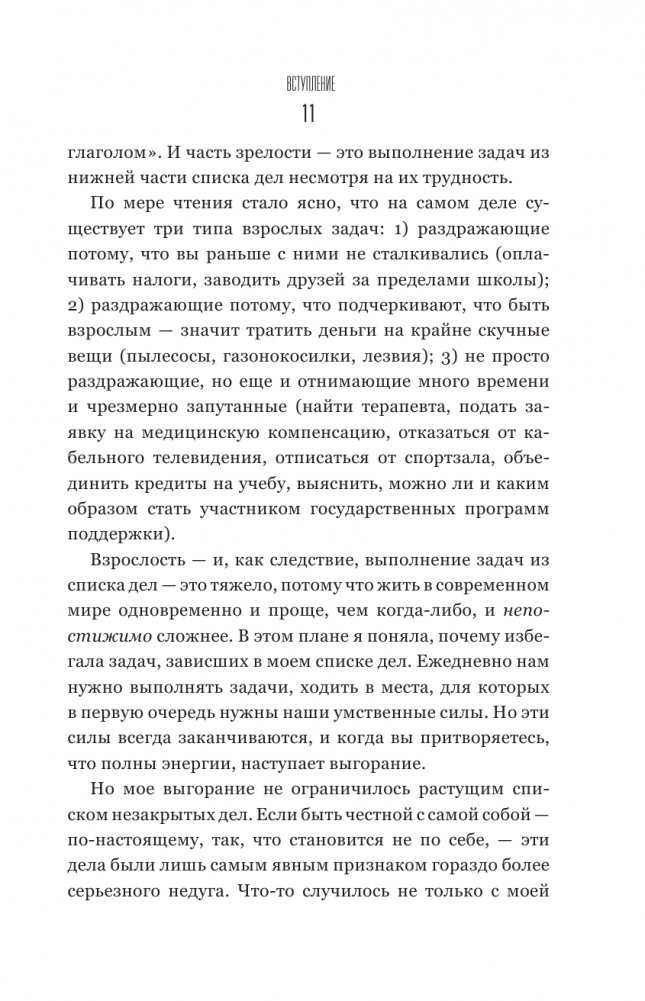 Выгорание – это то, чему подвержен каждый. Изо дня в день, от недели к неделе мы выполняем дела из нашего собственного списка, и всегда остаются незакрытые задачи, которые мы откладываем до лучших времен. Для поколения миллениалов такие задачи и страх перед их выполнением стали признаком "взрослости". Эта книга рассказывает о причинах глобальной усталости современного общества.