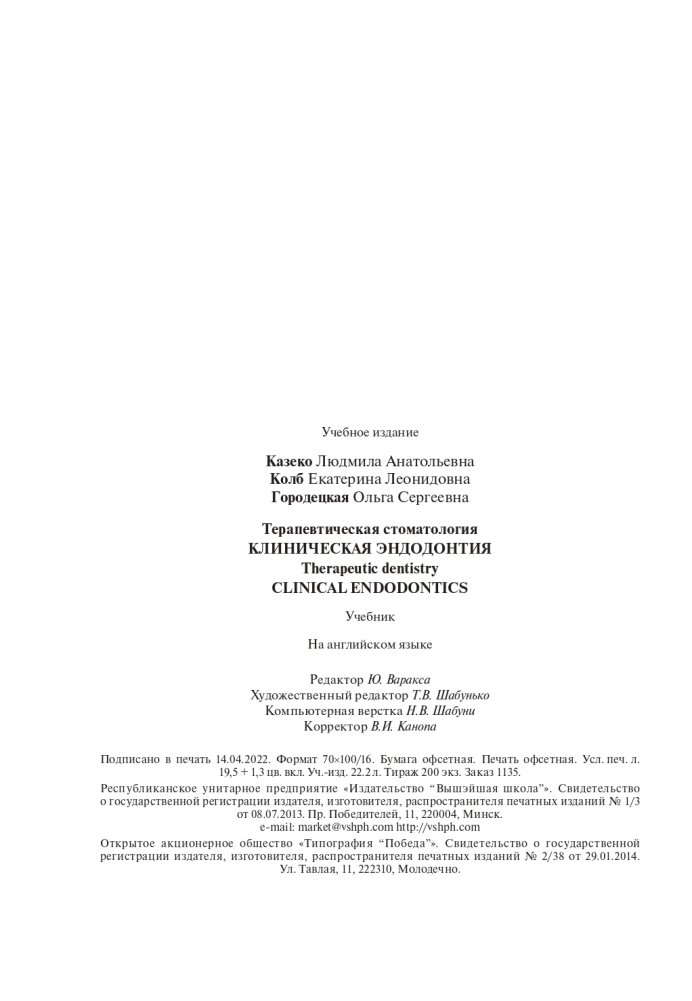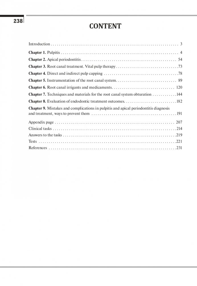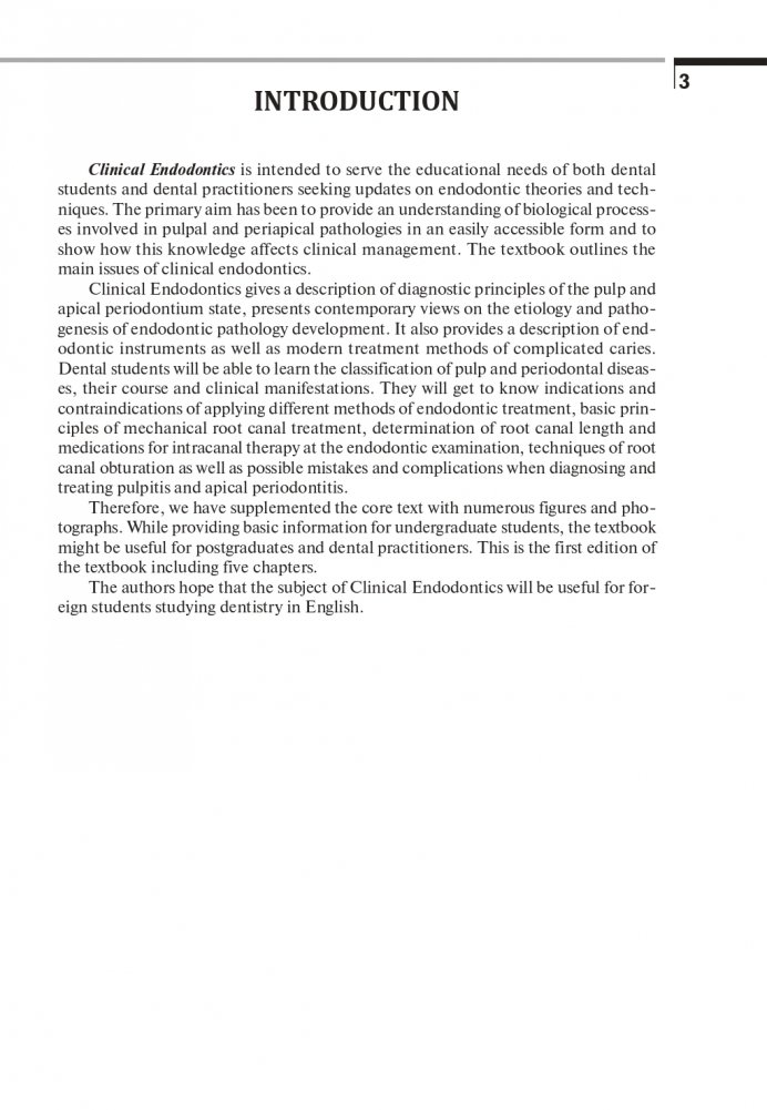 Изложены основные вопросы клинической эндодонтии. Освещены принципы диагностики состояния пульпы и верхушечного периодонта, современные представления об этиологии и патогенезе развития эндодонтической патологии, дано описание эндодонтического инструментария, а также современных методов лечения осложненного кариеса.