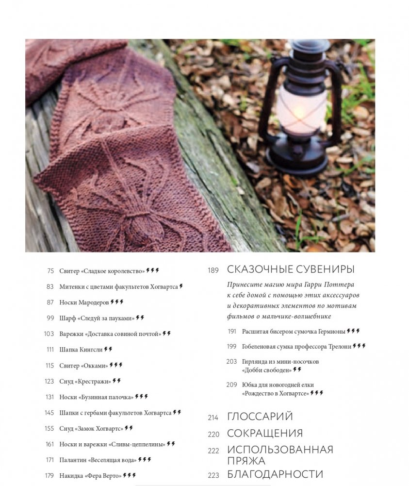 Вы сможете связать очаровательного Нюхля и робкого Пикетта, форменный джемпер для Квиддича и шарф Ньюта Саламандера, носки и митенки с символикой факультетов Хогвартса, вышитую бисером сумочку Гермионы и многое другое. В этом издании: