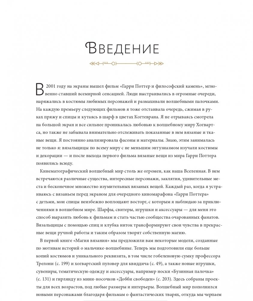 Вы найдете руководство по вязанию в различных техниках, таких как жаккард, ажурное вязание, двойное вязание. Здесь есть как простые модели для начинающих, так и сложные узоры, которые заинтересуют опытных вязальщиц. Как и первая часть, это кладезь интригующих деталей ― историй и кадров со съемок, концептов костюмов и других закулисных секретов ― для всех фанатов мира Гарри Поттера.