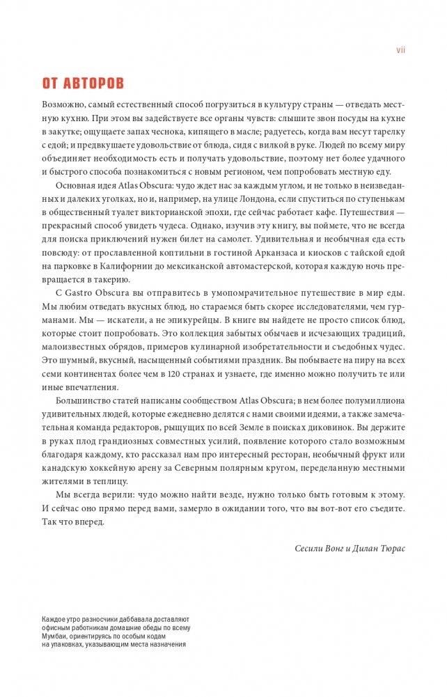 Книга охватывает все континенты (даже Антарктиду!) и предлагает читателю полную тарелку изысканных приправ, съедобных чудес и вкусовых открытий.