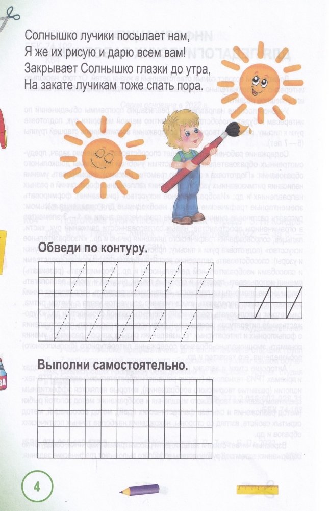Учебное пособие разработано в соответствии с учебной программой дошкольного образования. Включает задания, направленные на реализацию задач образовательных областей: «Подготовка к обучению грамоте» (письмо); «Изобразительное искусство» (рисование; подготовка руки к письму; простые линии; сложные линии; рисунки и узоры); «Художественная литература» (восприятие).
