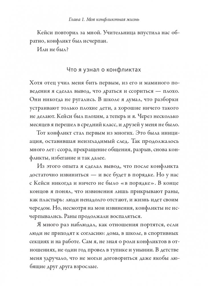 Конфликты в близких отношениях пугают, потому что на карту поставлено очень многое. В результате конфликта можно лишиться семьи, любимых людей или работы — всего, что связано с нашей безопасностью и выживанием. Чтобы не потерять эти важнейшие связи, мы стараемся избегать выяснения отношений. Между тем, неразрешенный конфликт влияет на каждый аспект нашей жизни — от уверенности в себе до физического и психического здоровья.