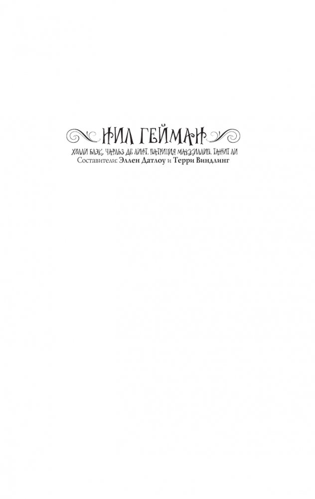 Фэйри или подобных им существ можно встретить почти во всех культурах мира. Доброжелательные и ужасающие, обаятельные и возмутительные, они меняют форму от страны к стране, от истории к истории и от момента к моменту, не меняя своей сути. Прославленные составители антологий Эллен Датлоу и Терри Виндлинг собрали под одной обложкой лучших творцов фантастических рассказов и стихов, которые в своем творчестве опираются на величайшее богатство мировых знаний о фэйри и классических произведений о них: Нила Геймана, Холли Блэк, Чарльза Де Линта, Патрицию Маккиллип, Танит Ли и многих других.