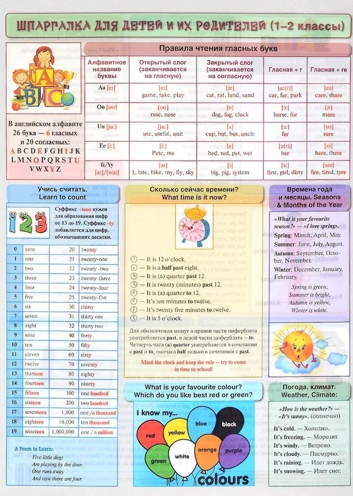 Справочные материалы: Английский язык. Шпаргалка для детей и их родителей (1-2 классы)
