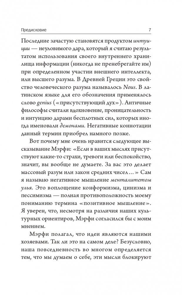 Джозеф Мэрфи, всемирно известный проповедник позитивного мышления и автор классического руководства по самопомощи «Сила вашего подсознания», учил, что всеми нами ? и всем миром ? управляют идеи и, если мы хотим обрести полную власть над собой и всем, что нас окружает, нам прежде всего нужно научиться контролировать свои мысли и идеи.