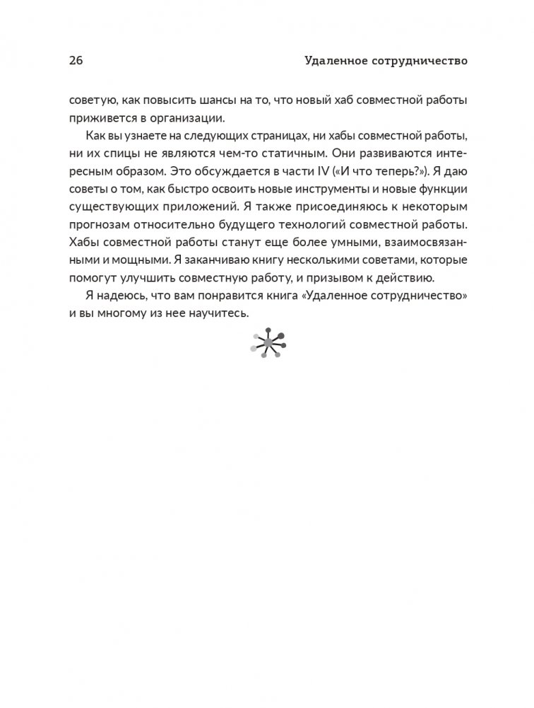В своей новой книге отмеченный наградами автор и признанный эксперт в области информационных технологий и совместной работы Фил Саймон предлагает важный системный подход. Он продвигает комплексную модель работы, основанную на принципе «хаб—спицы». И это не просто теоретические рассуждения — Саймон дает компаниям и группам конкретные советы, позволяющие преобразовать их совместную работу.
