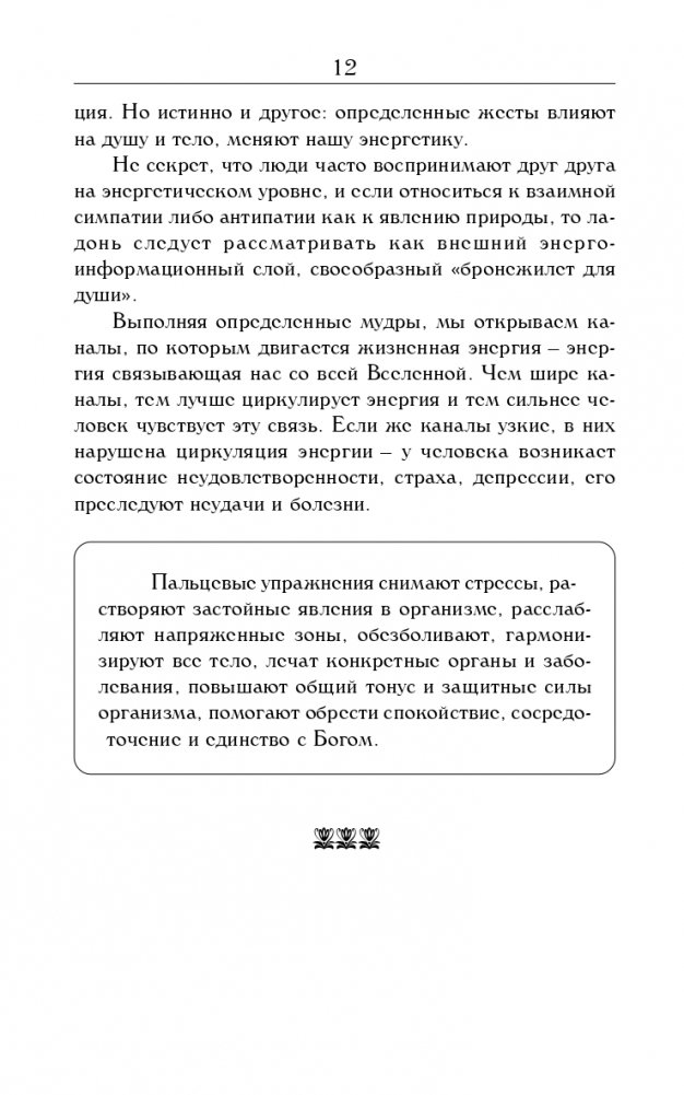 Эта книга посвящена одному из древнейших методов оздоровления — пальцевым замыканиям, или мудрам, которые помогают исцелять организм, устранять негативные эмоции, справляться с телесными недугами, дают возможность обрести внутренний покой, душевное равновесие и гармонию с окружающим миром. Здесь вы найдете простые упражнения, которые активизируют меридианы и наполняют организм живительной энергией Космоса, устраняя таким образом неполадки в пораженных болезнями органах и системах.