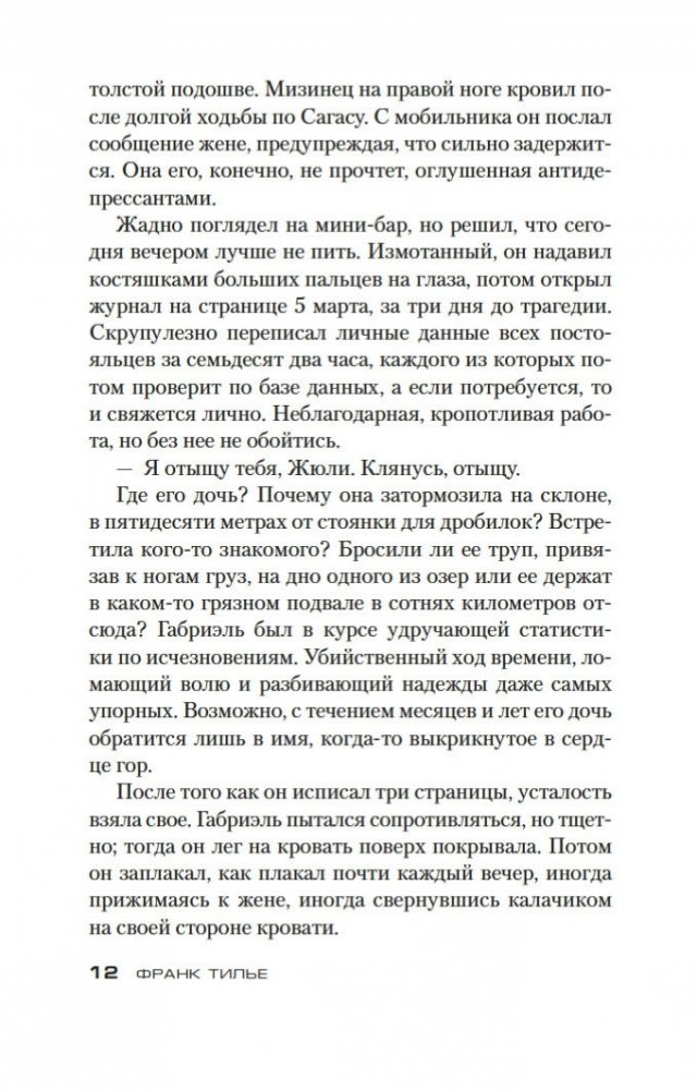 Литературный путь Франка Тилье, инженера-компьютерщика по образованию, начался с триллера «Адский поезд для Красного Ангела» (2004). Через год его роман «Комната мертвых» мгновенно стал бестселлером и получил несколько крупных наград. Ныне Тилье — неоспоримая звезда детективного жанра, обладатель многочисленных премий и автор двух десятков книг, выходящих многомиллионными тиражами и переведенных на многие языки мира. Бесследные исчезновения, извилистое полицейское расследование, тайное общество, русская мафия, потрясающая интрига — в романе «Жил-был раз, жил-был два».