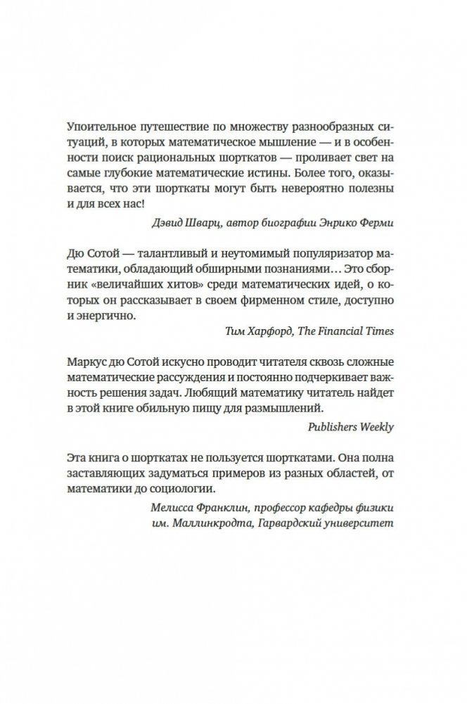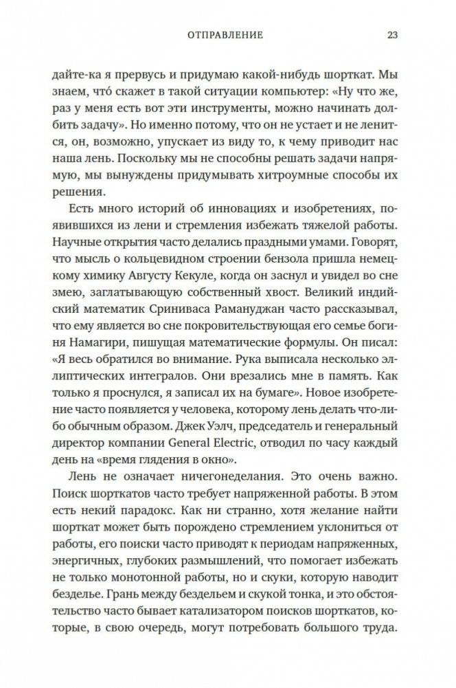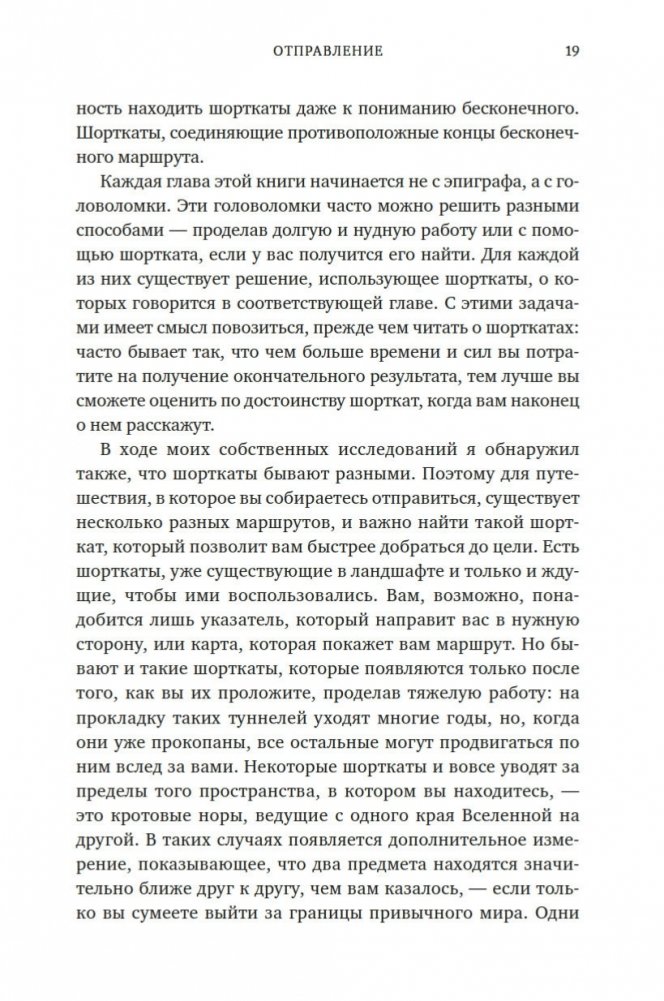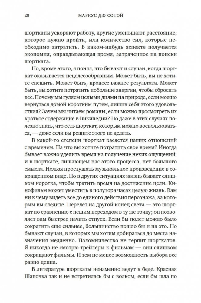 Принято считать, что залог успеха — упорный труд. Но подлинный успех приносит вовсе не он — его приносят шорткаты: более короткие и вместе с тем более легкие, более быстрые и более удобные пути решения той или иной задачи. Благодаря таким рациональным путям мы добиваемся выдающихся результатов. А по словам одного из величайших в мире математиков Маркуса дю Сотоя, математика — самое настоящее искусство шортката и лучшее средство экономии времени. Каждый из нас может сделать свою жизнь комфортнее при помощи нескольких шорткатов.
