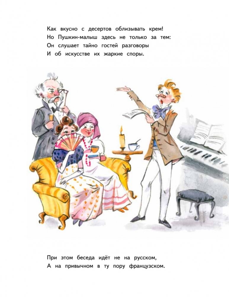 Знакомьтесь: это Саша Пушкин! Обычный мальчишка, который любит сладости, порой шалит и не слушается родителей. Саше не очень нравится учиться — ему бы сказки слушать, мечтать и сочинять свои истории. И дома, и в лицее он не отличается образцовым поведением. Но у маленького Саши есть характер, способности и стремления. И скоро его ждёт великое будущее — как и всех наших детей.
