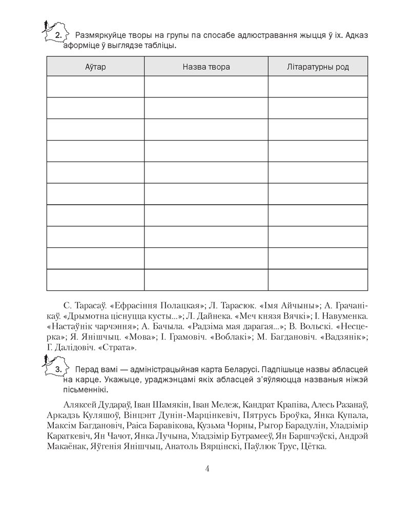Сшытак падрыхтаваны ў адпаведнасці з праграмай па беларускай літаратуры. Ён дапаўняе вучэбны дапаможнік і змяшчае заданні розных узроўняў складанасці, якія маюць творчы характар, развіваюць здольнасці вучняў. Сшытак дасць магчымасць замацаваць і праверыць набытыя на ўроку веды.