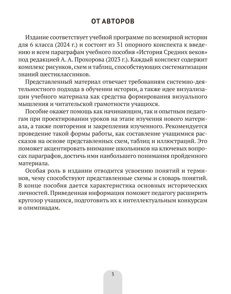 Издание соответствует программе и учебному пособию по истории Средних веков для 6 класса. Учебный материал представлен в виде рисунков, схем и таблиц, что облегчает его восприятие и запоминание, способствует повторению и систематизации изученного. Кроме того, с помощью пособия учителя смогут разнообразить урок, а родители — поддержать ребенка в изучении предмета.