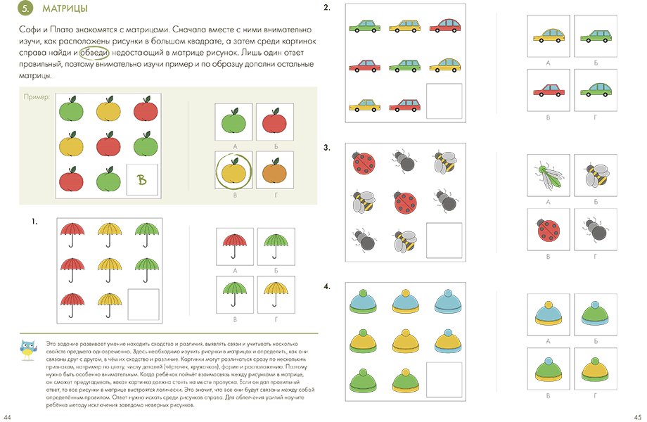 Книга нацелена на развитие умственных способностей ребенка: навыки сравнения, анализа, синтеза, абстракции, конкретизации, индукции и дедукции