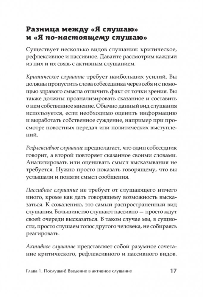 Эта книга научит вас слушать активно и даст 30 практических приемов общения без недопонимания. Станьте искусным слушателем!