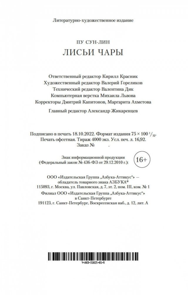 Вот уже три столетия в любой китайской книжной лавке можно найти сборник рассказов Пу Сун-лина, в котором читателя ожидают удивительные истории: о лисах-оборотнях, о чародеях и призраках, о странных животных, проклятых зеркалах, говорящих птицах, оживающих картинах и о многом, многом другом. На самом деле книги Пу Сун-лина давно перешагнули границы Китая, и теперь их читают по всему миру на всех основных языках. Автор их был ученым конфуцианского воспитания, и, строго говоря, ему вовсе не подобало писать рассказы о всевозможных чудесах и содержащие эротические мотивы. Однако Пу Сун-лин прославился именно такими книгами, став самым известным китайским писателем своего времени. Почвой для его творчества послужили народные притчи, но с течением времени авторские истории сами превратились в фольклор и передавались из уст в уста простыми сказителями. В настоящем издании публикуются рассказы Пу Сун-лина о феях-лисицах и монахах-волшебниках, которые «являются к людям, чтобы, смешав действительность с миражем, резко и определенно отделить достойного человека от злодеев». Тексты сопровождают подробные примечания филолога-китаиста Василия Михайловича Алексеева.