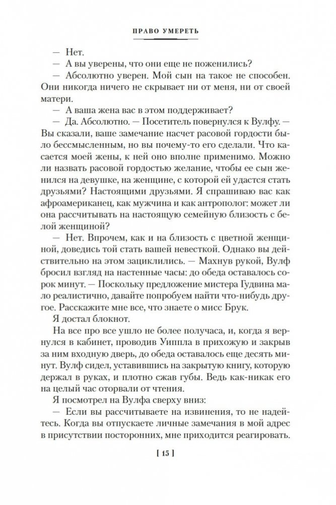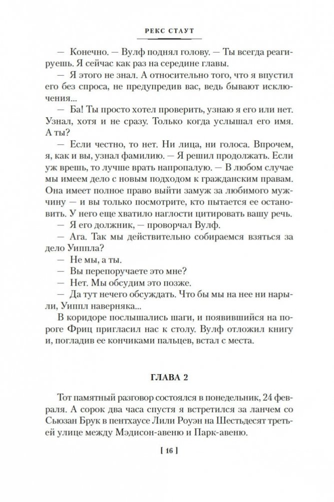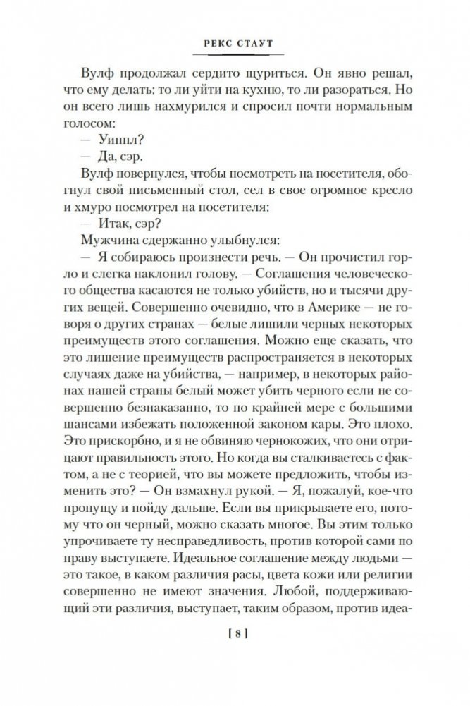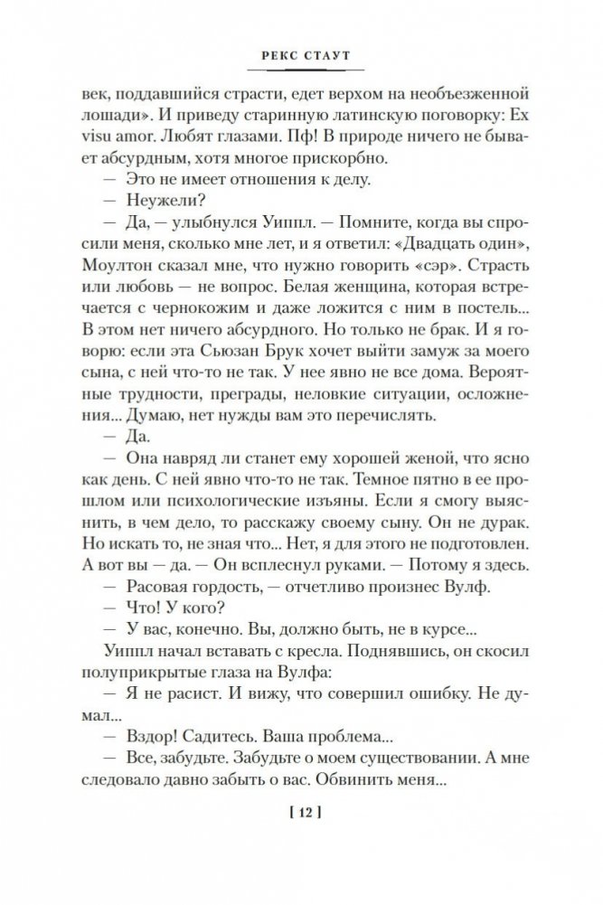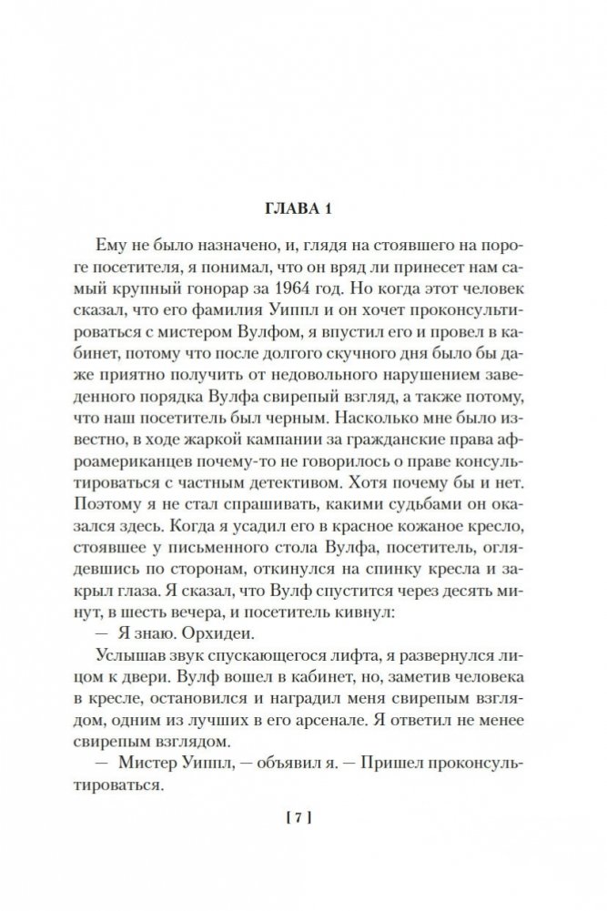 Ниро Вулф, страстный коллекционер орхидей, большой гурман, любитель пива и великий сыщик, практически никогда не выходит из дому. Все преступления он распутывает на основе тех фактов, которые собирает Арчи Гудвин, его обаятельный, ироничный помощник с отличной памятью. К Вулфу обращается Пол Уиппл, чернокожий, который много лет назад помог детективу в расследовании одного преступления, с просьбой выяснить, почему его сын хочет жениться на богатой белой девушке. Вулф, связанный понятием долга, с неохотой соглашается. Но тут девушку убивают, а ее чернокожего жениха арестовывают, так как подозревают, что убийца именно он. Ниро Вулф и Арчи Гудвин берутся расследовать это дело… Рейчел Брунер просит Вулфа оградить ее от преследования всемогущего ФБР. Гудвин, настроенный скептически, пытается отговорить своего шефа, но Вулф, преисполненный энтузиазма, решает иначе и берется расследовать нераскрытое убийство двухмесячной давности, в котором замешаны сотрудники ФБР, однако настоящей задачей Вулфа является не раскрытие убийства, а отпор зарвавшемуся ФБР… Орри Кэтера, одного из помощников Вулфа, полиция подозревает в убийстве молодой женщины. Однако Ниро Вулф, Арчи Гудвин и их неизменные помощники Сол Пензер и Фред Даркин убеждены в невиновности Орри. Чтобы это доказать, детективы должны найти настоящего убийцу…
