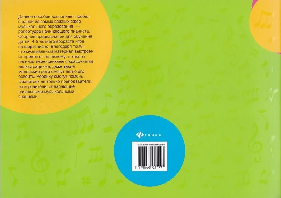 Настоящий сборник является методическим пособием, предназначенным для обучения игре на фортепиано детей 4-5-летнего возраста. Весь нотный материал публикуется впервые. Тексты песенок образны и доступны по содержанию. В силу особенностей детской психологии данного возраста автор считает нецелесообразным перегружать нотный текст лишними знаками, поэтому в песенках отсутствуют паузы, не имеющие мелодического значения. Аппликатура и штрихи не проставлены в связи с тем, что в зависимости от поставленной цели и индивидуальных особенностей строения руки ребенка варианты могут быть различны. Использование партии учителя не является обязательным, а служит гармоническим дополнением к мелодиям. Предлагаемые ритмические упражнения могут быть одним из вариантов работы над развитием ритма.