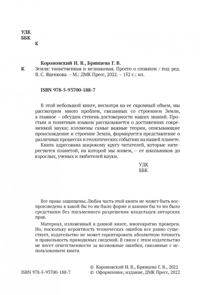 В этой небольшой книге мы рассмотрим множество проблем, связанных со строением Земли, а главное – обсудим степень достоверности наших знаний. Простым и понятным языком рассказывается о достижениях современной науки; изложены самые важные теории, описывающие происхождение и строение земного шара, формируется представление о различных процессах и геологических событиях на нашей планете.