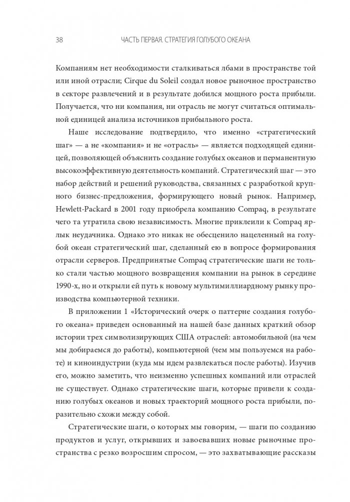 Авторы «Стратегии» уверены — нужно отойти в сторону и придумать нечто совершенно новое. И тогда в спокойных водах «Голубого океана» ваш бизнес добьется желаемого роста. Чан Ким и Моборн предлагают подробные инструкции по выведению компании из состояния конкурентного стресса и созданию совершенно новой бизнес-модели.