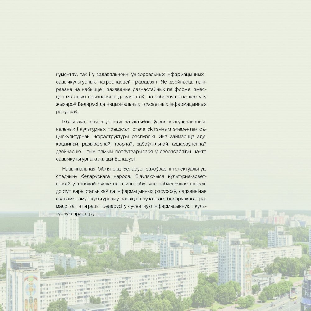 Фотаальбом прысвечаны 100-годдзю Нацыянальнай бібліятэкі Беларусі. На яго старонках змешчаны фотаздымкі, якія храналагічна адлюстроўваюць важнейшыя падзеі ад пачатку заснавання бібліятэкі да сучаснасці. Выданне разлічана на ўсіх, каго цікавіць гісторыя станаўлення і развіцця галоўнай універсальнай навуковай бібліятэкі краіны.