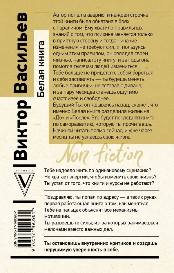 Будущий Ты, оглядываясь назад, скажет, что именно Белая книга разделила жизнь на До и После. Это будет последняя книга по саморазвитию, которую ты прочитаешь.