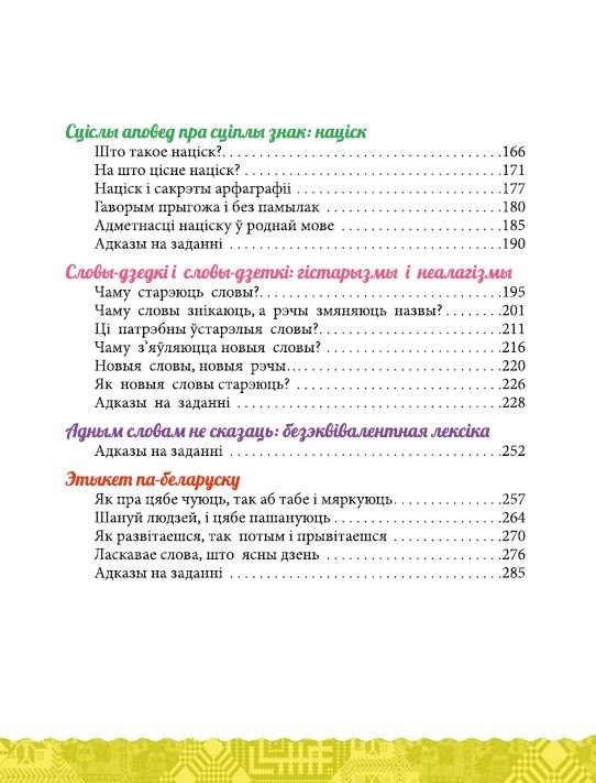 У кнiзе ў адаптаванай для дзiцячага ўспрымання форме выкладаюцца звесткi па гiсторыi беларускай мовы, расказваецца пра яе арфаграфiчныя, арфаэпiчныя i лексiчныя асаблiвасцi, на займальным матэрыяле тлумачацца законы сучаснаrа беларускага правапiсу. Для адпрацоўкi новых ведаў, аўтаматызацыi i замацавання атрыманых правапiсных уменняў i навыкаў у выданне ўключаны займальныя заданнi.