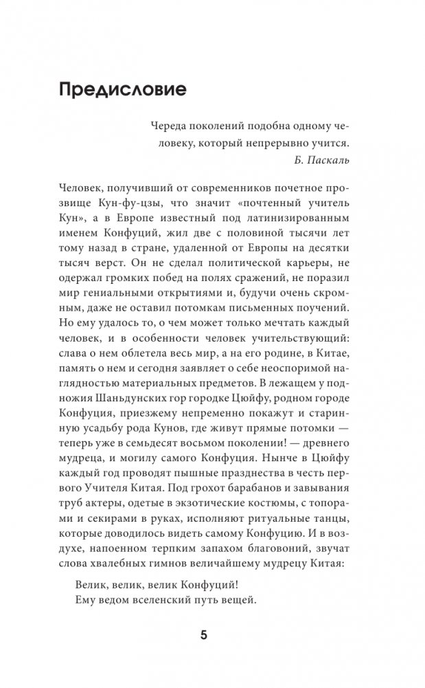 Конфуций жил две с половиной тысячи лет назад. Он не совершил гениальных открытий, но имя его стало подлинным символом народной мудрости, а слава о нем облетела весь мир и не меркнет до сих пор. В чем же секрет наследия Конфуция? Он был Учителем человечности в человеке. Начни исправлять мир с самого себя; прежде чем поучать других, позаботься о собственном совершенствовании, стань творцом культуры — вот главный завет философа. Он говорил, что самообладание, здравый смысл, скромность и усердие способны привести любого человека к вершинам мудрости, сделать его хозяином собственной судьбы. Этому мы по сей день учимся у Конфуция. Издание содержит иллюстрации и комментарии к текстам.