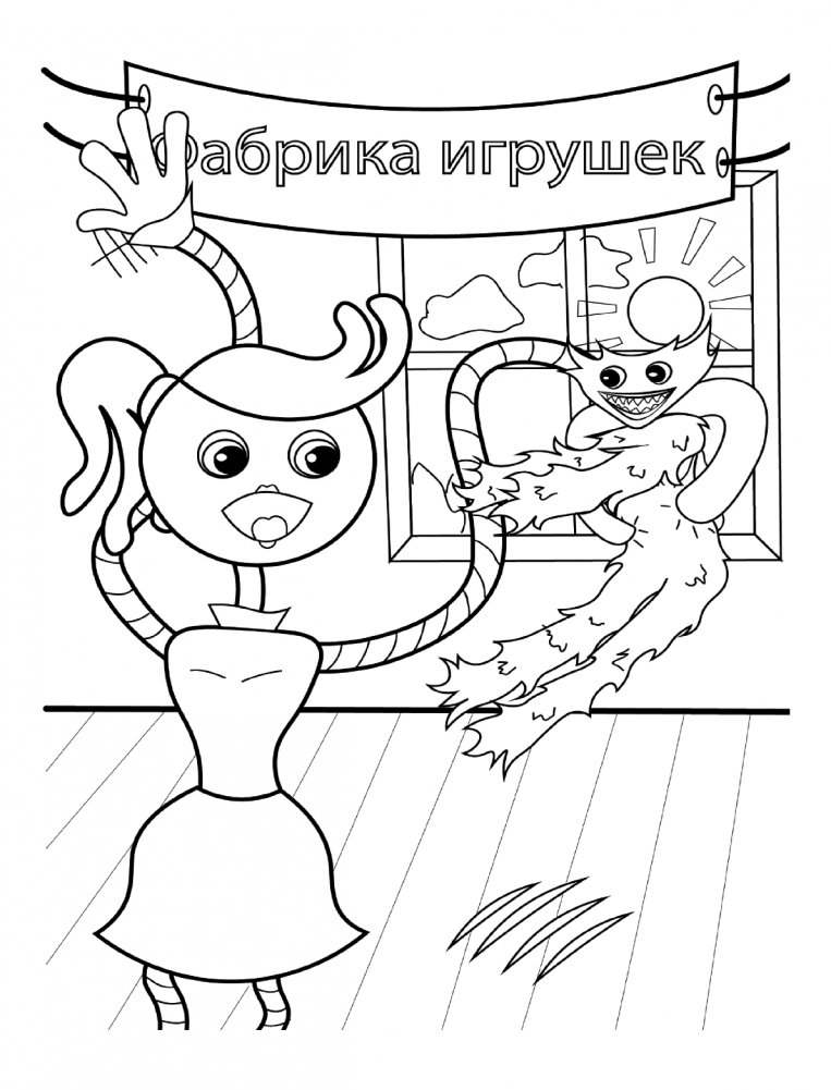 Большая раскраска с персонажами популярной игры Poppy Playtime.