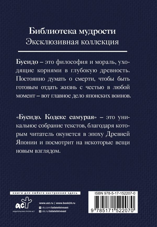 «Бусидо. Кодекс воина» — это уникальное собрание текстов, благодаря которым читатель окунется в эпоху Древней Японии и посмотрит на некоторые вещи новым взглядом.
