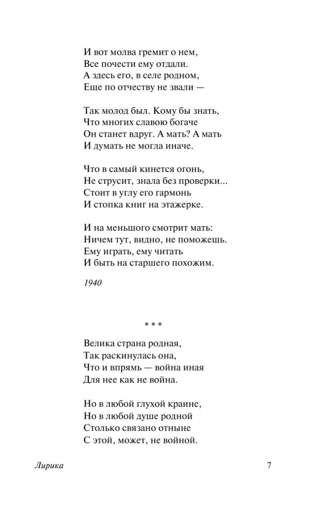 В сборник также вошли стихотворения разных лет — преимущественно поздняя лирика Твардовского, его осмысление жизни и творческого пути.