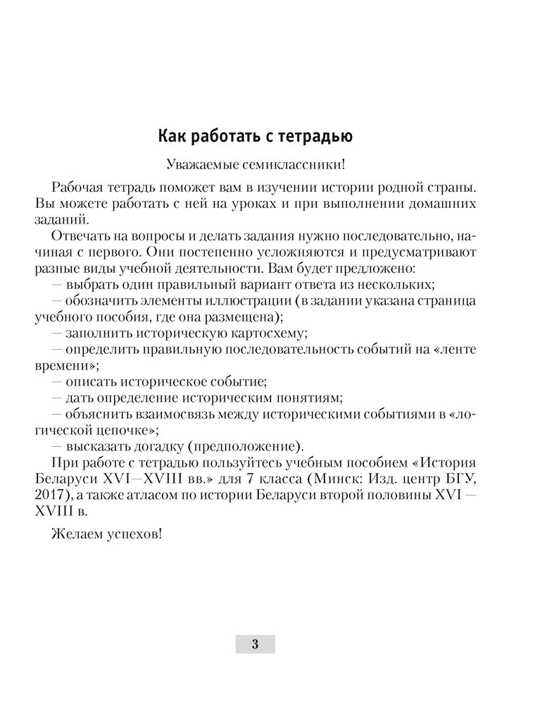 Как родитель ученика 7 класса, хочу выразить свою благодарность за создание и использование рабочей тетради по истории Беларуси XVI-XVIII веков.