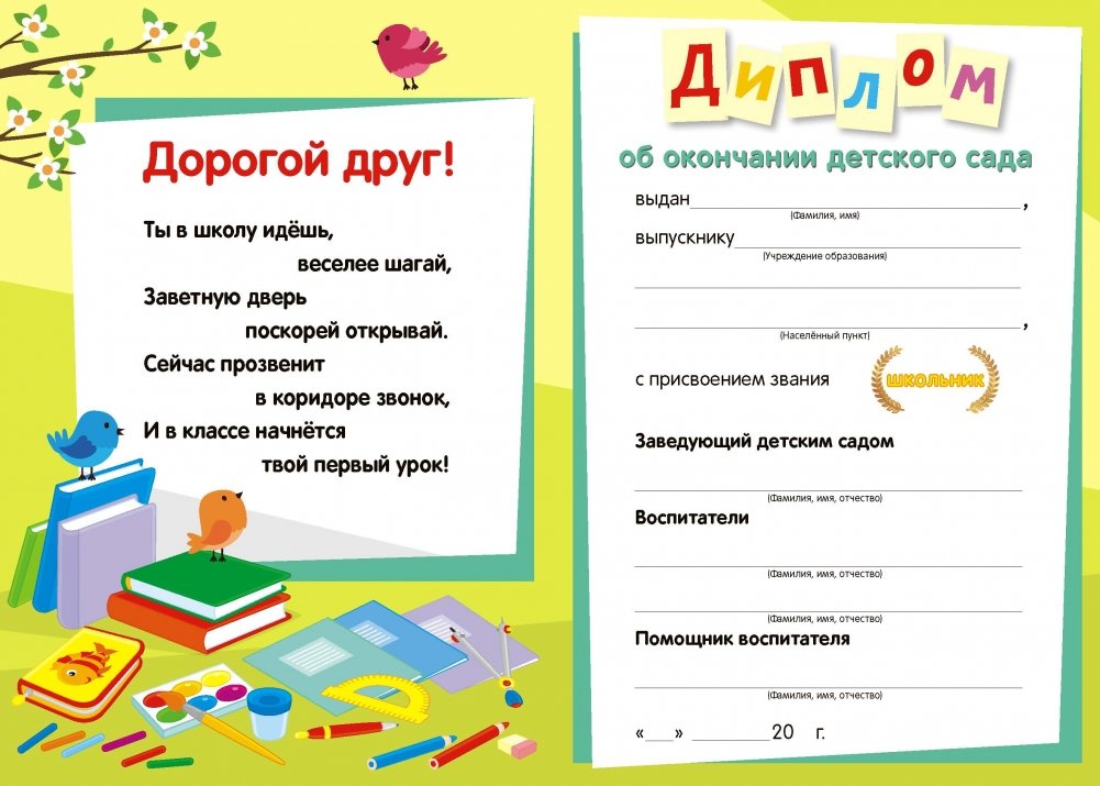 Диплом об окончании детского сада