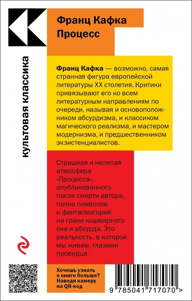 Опубликованный после смерти Франца Кафки, «Процесс», полный символов и фантасмагорий, на грани кошмарного сна и абсурда — реальность, в которой мы живем, глазами провидца.