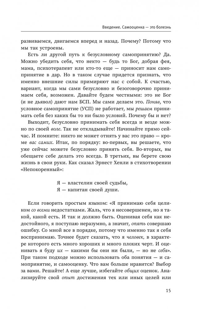 Книга содержит не только блестящую теорию Эллиса, но и эффективные упражнения, которые помогут изменить нездоровые паттерны мышления, эмоций и поведения на более позитивный подход самопринятия.